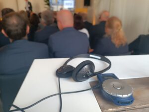Als je iemand nodig hebt die vertaalt wat een spreker tegen een groter publiek zegt, tolk ik graag simultaan voor je. Dit doe ik soms vanuit een tolkencabine. Ik vertaal dan alles en de luisteraars luisteren ernaar via een ontvanger met een koptelefoon. Een cabine kan best kostbaar zijn. Daarom maak ik ook graag gebruik van mijn fluisterset. Dit is vaak een goed alternatief. Ik zit dan met een microfoon in dezelfde zaal, mits de ruimte daar geschikt voor is en het anderen niet stoort.